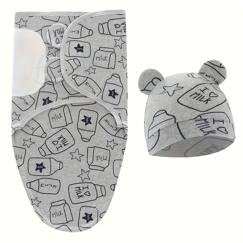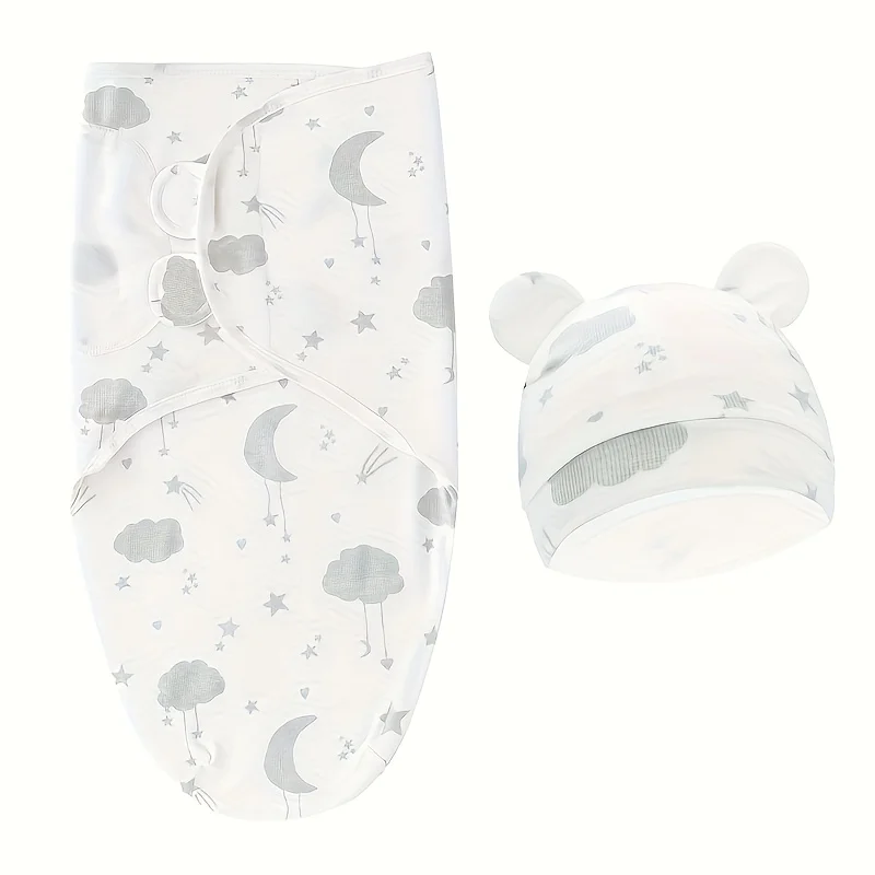 1PC Baby Swaddle Set with Hat, Soft Gray, Star, Cloud & Moon Patterns for Boys and Girls, Holiday Gift