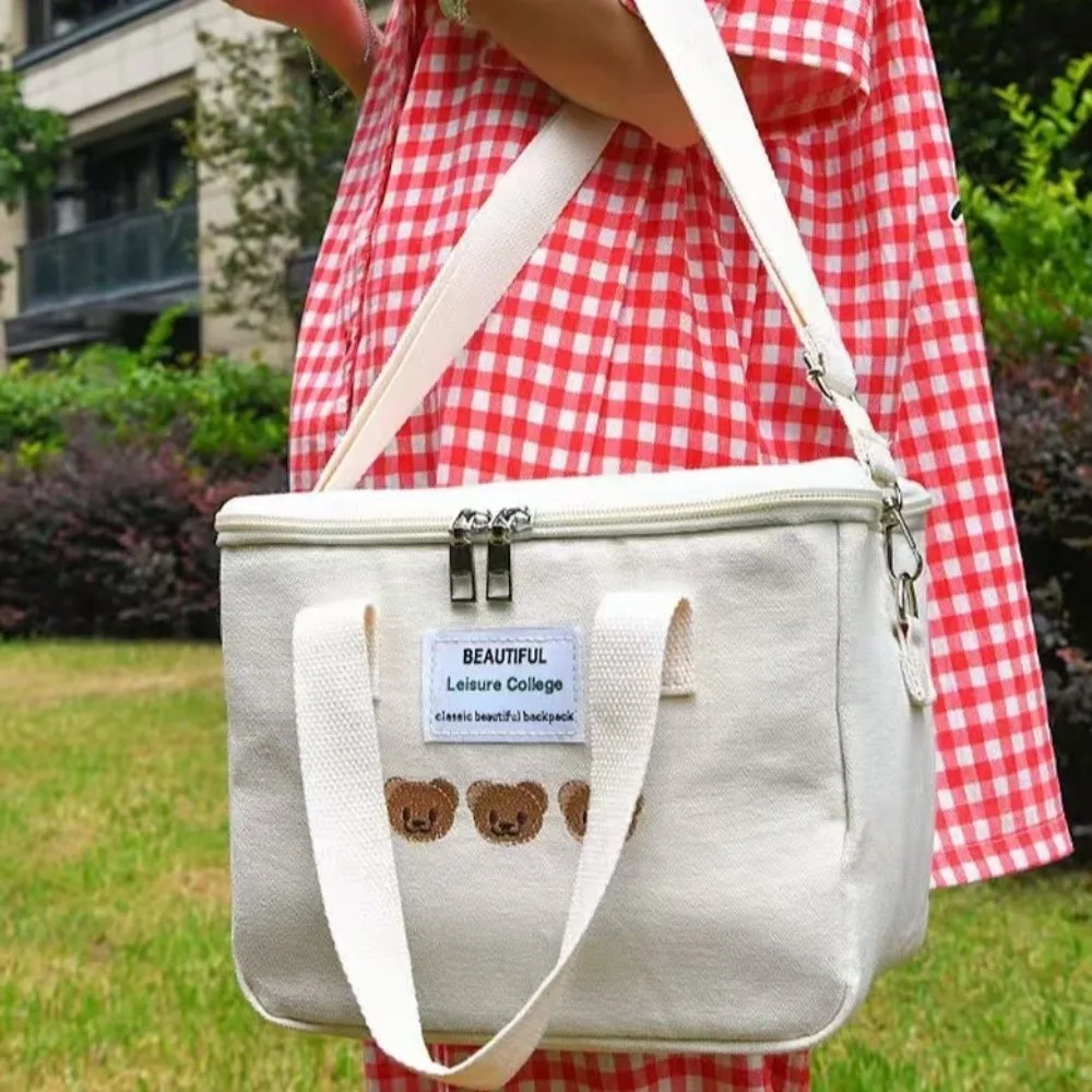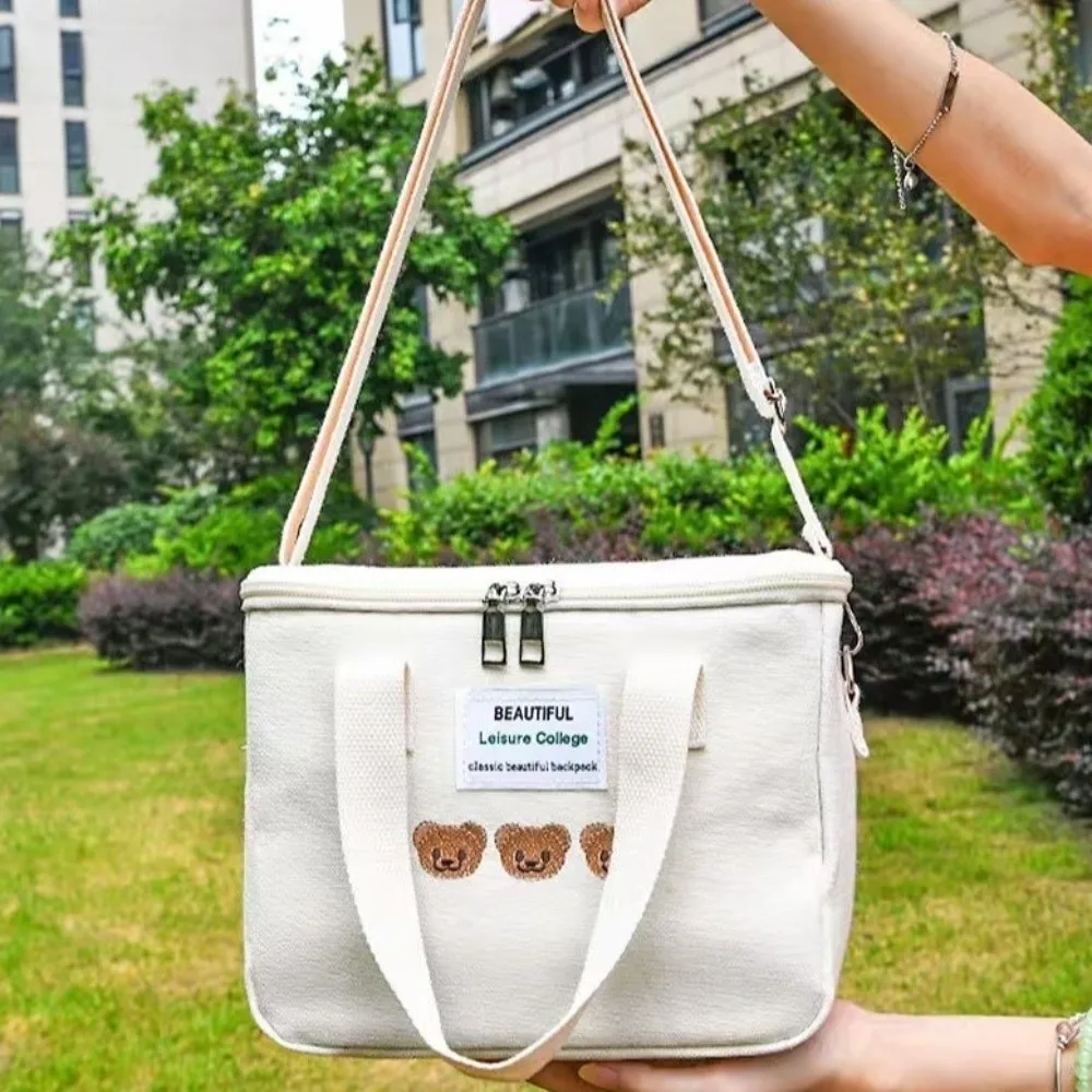 Fashion Canvas Mummy Bag Cartoon Bear Baby Diaper Organizer Multifunctional Baby Care Storage Single Shoulder Bag Mother Kids