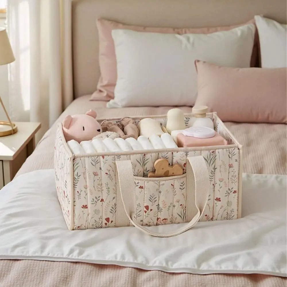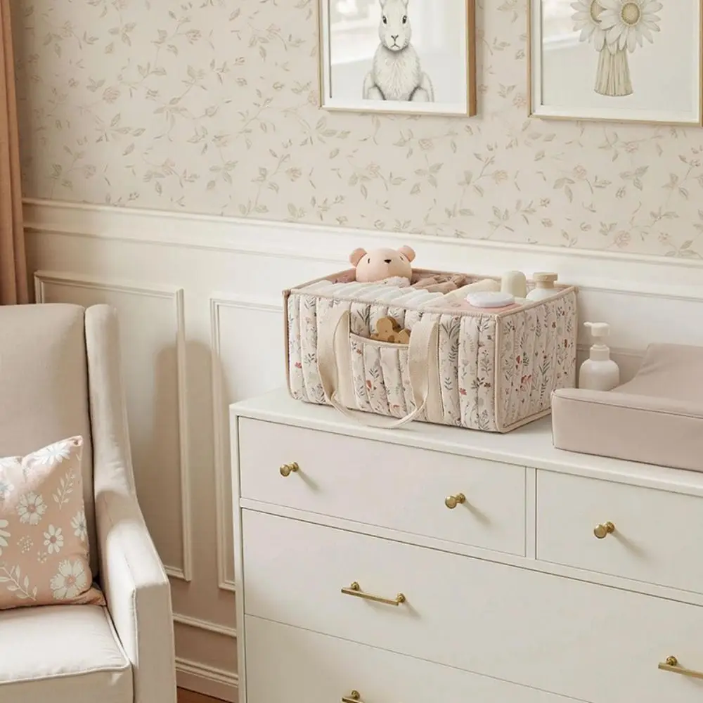 Large Capacity Baby Diaper Organizer Portable Floral Nursery Storage Basket Newborn Essentials Baby Diaper Storage Bag